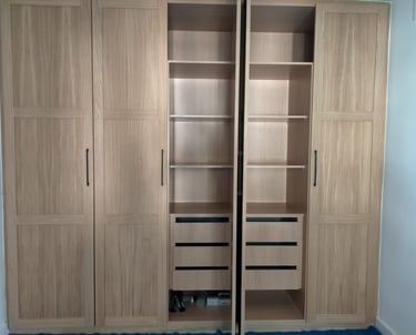 Diseñamos y fabricamos armarios personalizados que aprovechan al máximo tu espacio, combinando funcionalidad, diseño y calidad.